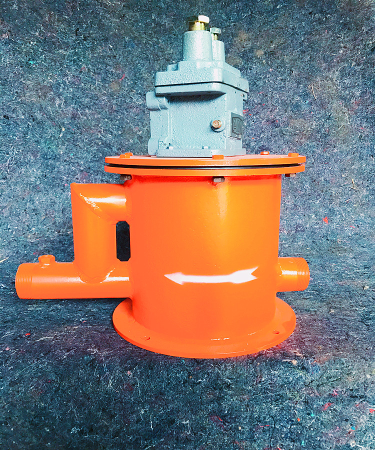 斷水保護(hù)裝置由隔爆外殼和內(nèi)部組裝微動開關(guān)組成,斷水保護(hù)裝置,礦用微動隔爆開關(guān)外殼包括主腔和接線箱,運(yùn)動部分為直動式。水箱內(nèi)有不銹鋼浮子,浮子室有進(jìn)水口,浮子、密封墊及排氣管出水口組成;利用水的浮力使浮子浮起打開微動開關(guān),保證泵的控制回路接通;斷水保護(hù)裝置,礦用微動隔爆開關(guān)管道無水時浮子落下,微動開關(guān)打開,泵的控制回路斷開。還可根據(jù)需要在出水口安裝水壓表顯示供水管的壓力。